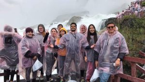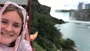 Am Samstag sind wir dann nach einer kleinen Erkundungstour durch die Gegend um die Niagara Fälle mit „Cave of the Winds“ in den Tag gestartet. Nachdem wir dann also alle einen rosafarbenen Poncho bekommen hatten sind wir auf Holzstegen bis an die Fälle herangelaufen. Und ja, wenn ich sage bis an die Fälle, dann meine ich, dass wir alle nass geworden sind. Kostet ein bisschen Überwindung bei 10 Grad, war es aber definitiv wert!