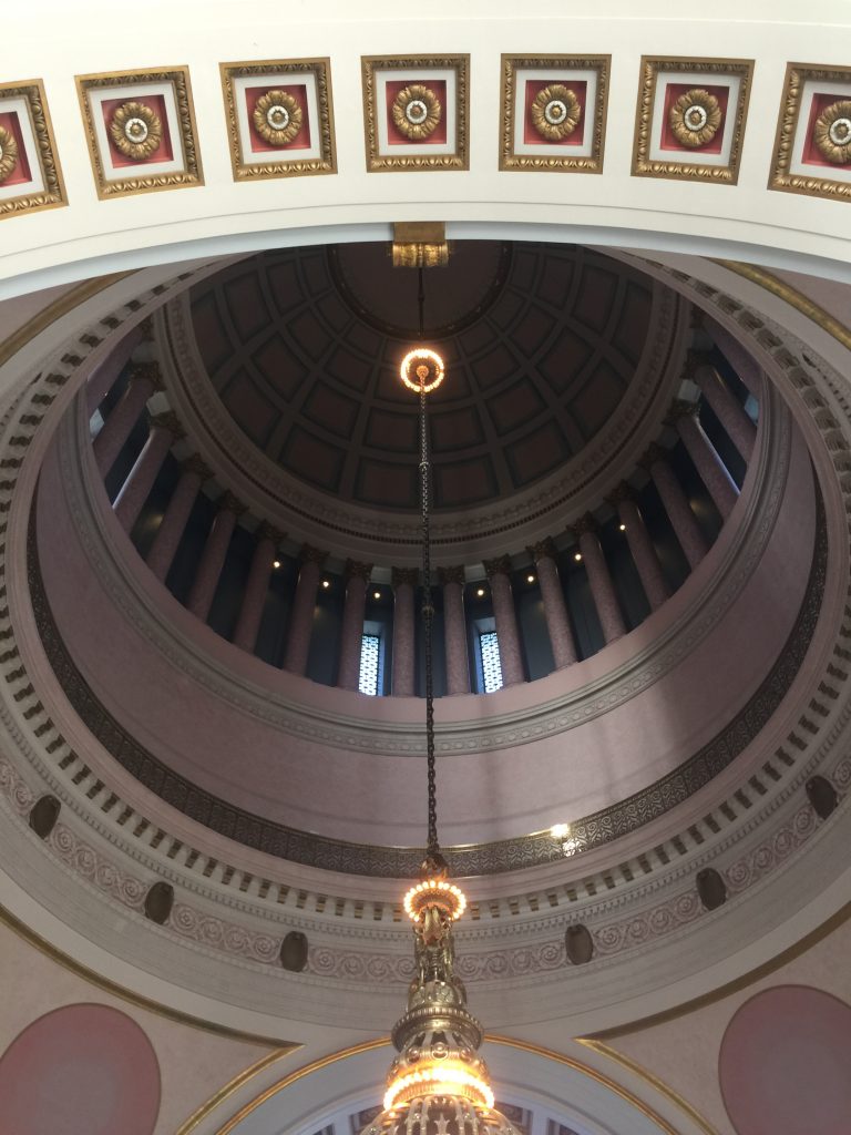 Der Besuch des Washington State Capitol war dagegen beeindruckend! Wir nahmen an einer Führung durch das legislative building teil und lernten sehr viel darüber. Die fast ausschliesslich verwendeten Baumaterialien sind Sandstein und Marmor, die Tore bestehen aus Bronze und man findet die weltweit größte Sammlung von Tiffany-Lampen unter der 87 Meter hohen Kuppel. Zu dem größtenteils verwendeten grau-weißen Marmor (es wurden sieben verschiedene Arten benutzt), meinte unser Tour-Leiter, dass man auf der Insel in Alaska, wo der Marmor herkommt, keinen mehr finden kann, obwohl Sie danach benannt ist, weil alles in diesem Gebäude verbaut wurde.