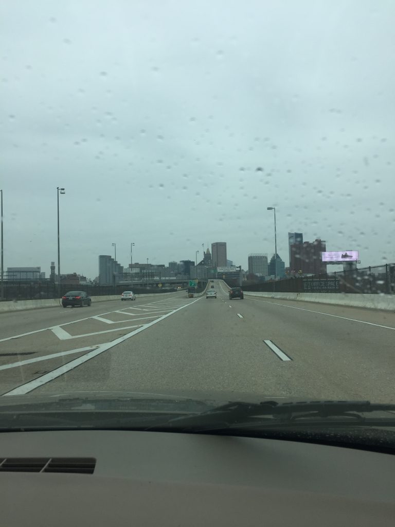 An einem anderen Wochenende machte sich Theo mit mir und Clara auf nach Baltimore. Wir hofften auf strahlenden Sonnenschein, während wir im Regen zu der Stadt fuhren.