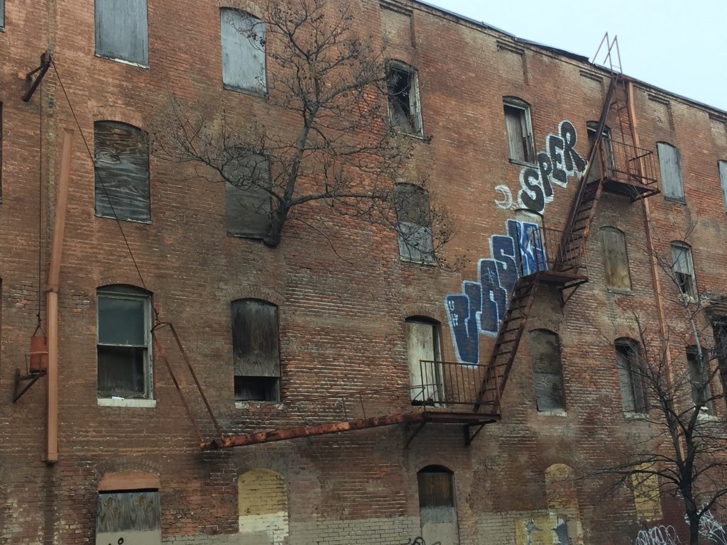 Sobald man nur ein wenig aus dem Zentrum herauskommt, sieht es so aus. Viele Häuser stehen leer und sind zerfallen, halb abgerissen oder sogar von Bäumen bewachsen.